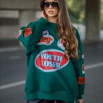 Bluza Damska HARLEY średniej długości z suwakiem na boku, bez kaptura . Bluza w kolorowe aplikacje na przodzie i rękawach.