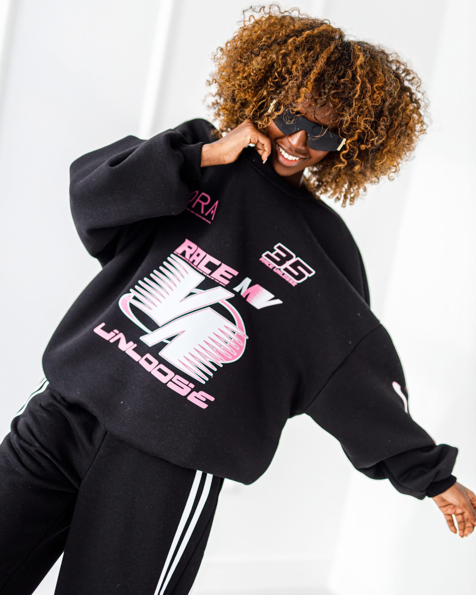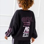 Modna bluza oversize z ściągaczami i efektownym nadrukiem 35 na plecach. Luźny krój zapewnia wygodę, a sportowo-streetwearowy styl sprawdzi się w codziennych stylizacjach.