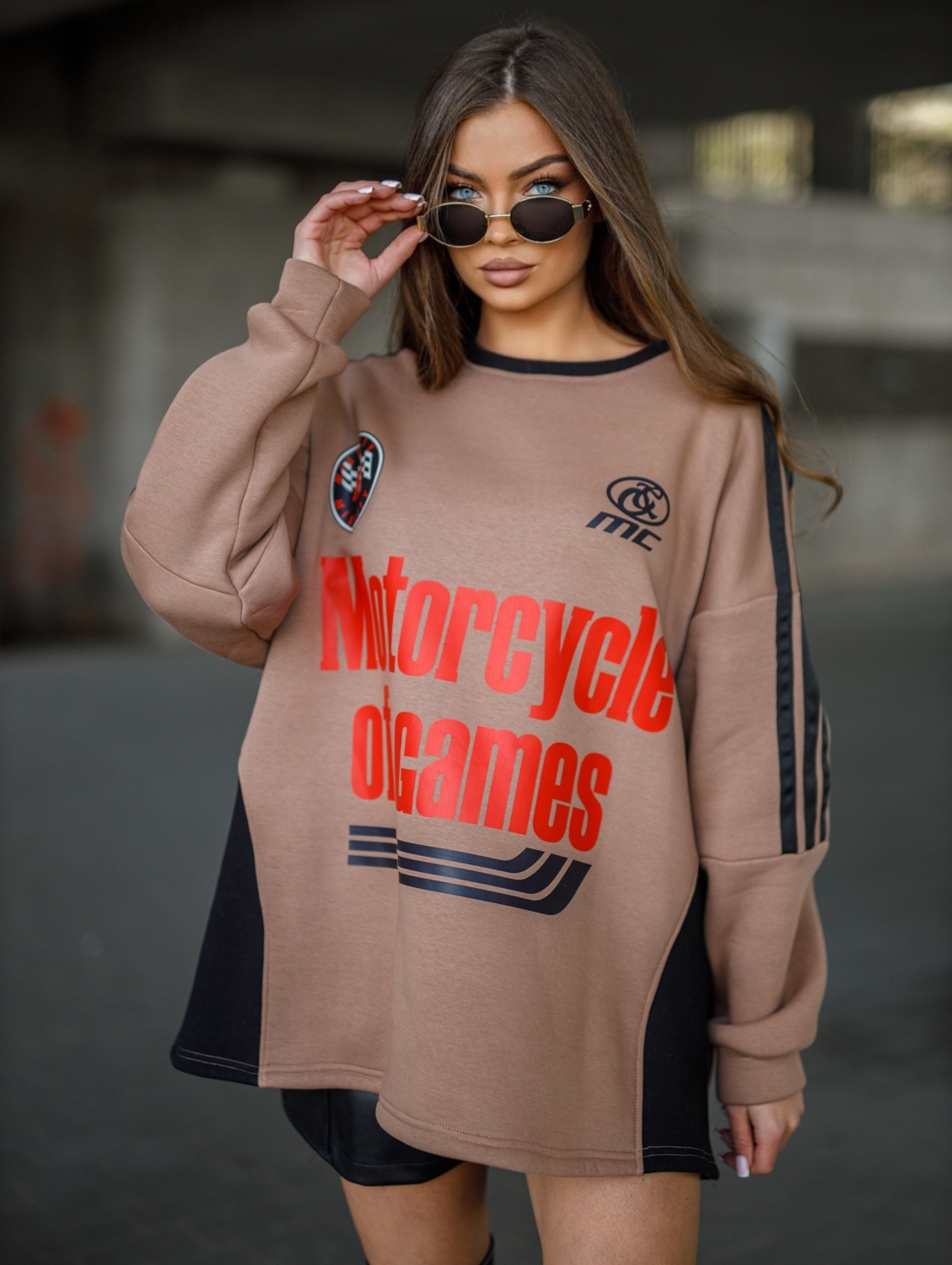 Bluza Damska MOTORS – oryginalny wzór bluzy damskiej – krój oversize, bez kaptura, wkładana przez głowę. Duża aplikacja z przodu.