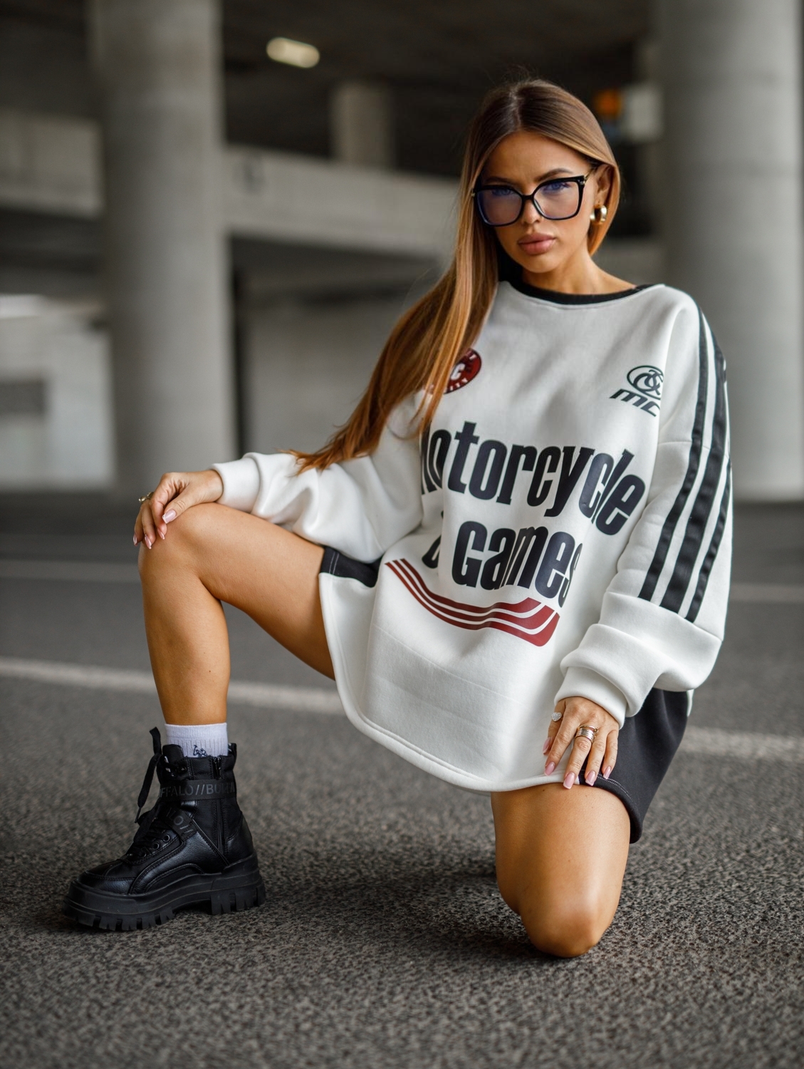 BLUZA OVERSIZE MOTORS – WHITE/ BLACK