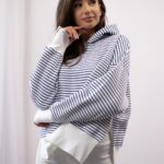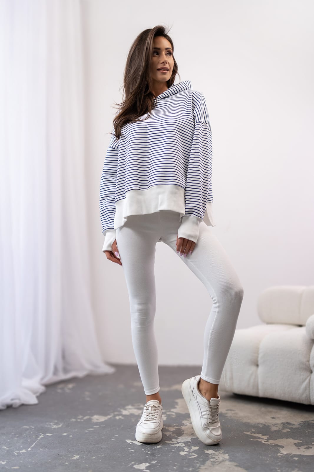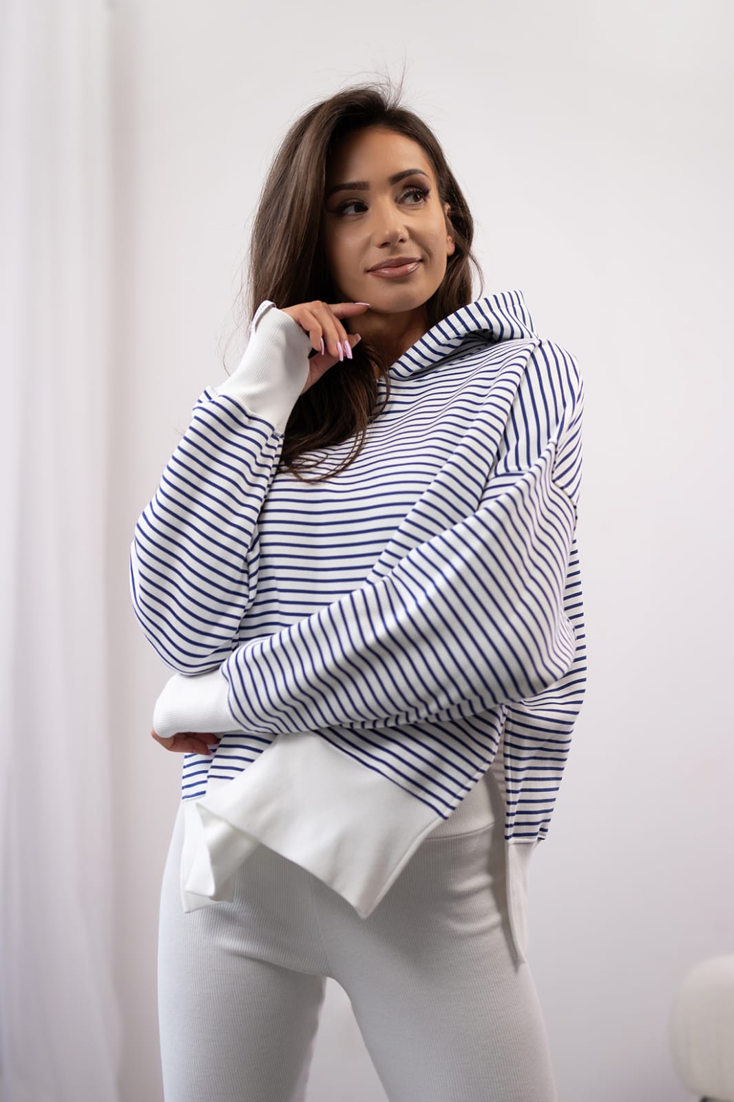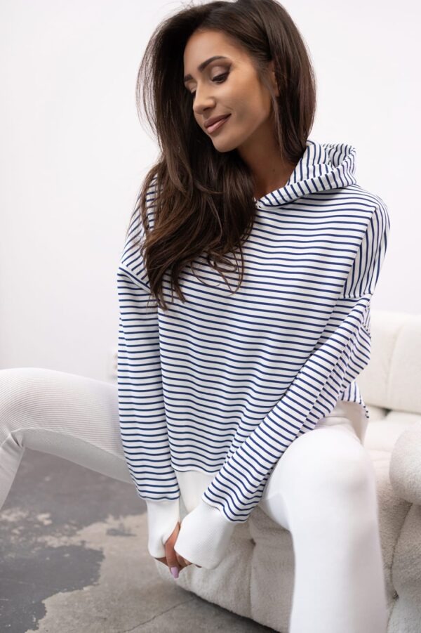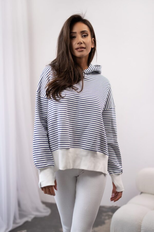 BLUZA Z BAWEŁNA I KAPTUREM STRIPES GRANATOWA