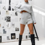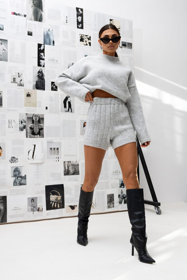 Stylowy komplet z miękkiej, przyjemnej w dotyku dzianiny, który łączy komfort z nowoczesną elegancją. W skład zestawu wchodzi luźny sweter o prostym kroju oraz dopasowane szorty z elastyczną talią.