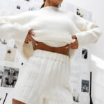 Stylowy komplet z miękkiej, przyjemnej w dotyku dzianiny, który łączy komfort z nowoczesną elegancją. W skład zestawu wchodzi luźny sweter o prostym kroju oraz dopasowane szorty z elastyczną talią.
