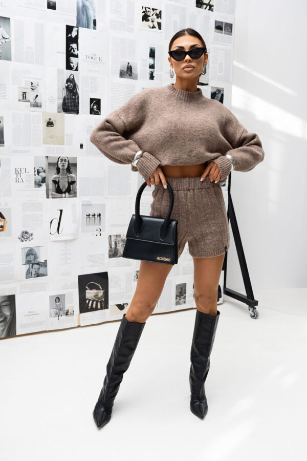 Stylowy komplet z miękkiej, przyjemnej w dotyku dzianiny, który łączy komfort z nowoczesną elegancją. W skład zestawu wchodzi luźny sweter o prostym kroju oraz dopasowane szorty z elastyczną talią.