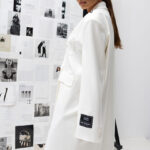 Stylowy płaszcz wykonany z wysokiej jakości materiału, ma luźny, oversize’owy krój, zapewniając swobodę ruchów. Szerokie ramiona i podwójne zapięcie na guziki nadają wyrazistej formy, a duże kieszenie oraz naszywka na rękawie dodają oryginalności i charakteru. Rękawy można wywinąć na 3/4, by odsłonić pięknie obszytą podszewkę, co dodaje eleganckiego akcentu. Idealnie komponuje się z różnorodnymi stylizacjami — od casualowych po eleganckie. Doskonały na co dzień i na specjalne okazje, ten płaszcz podkreśli Twój indywidualny styl!