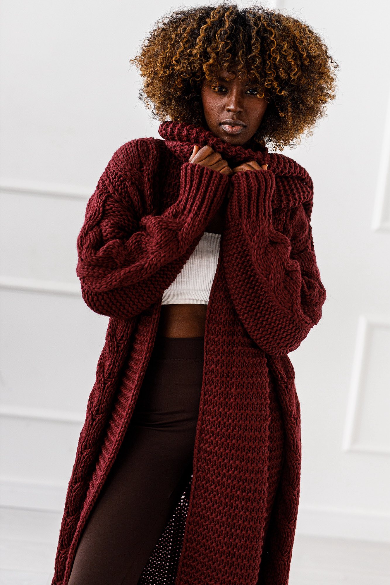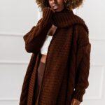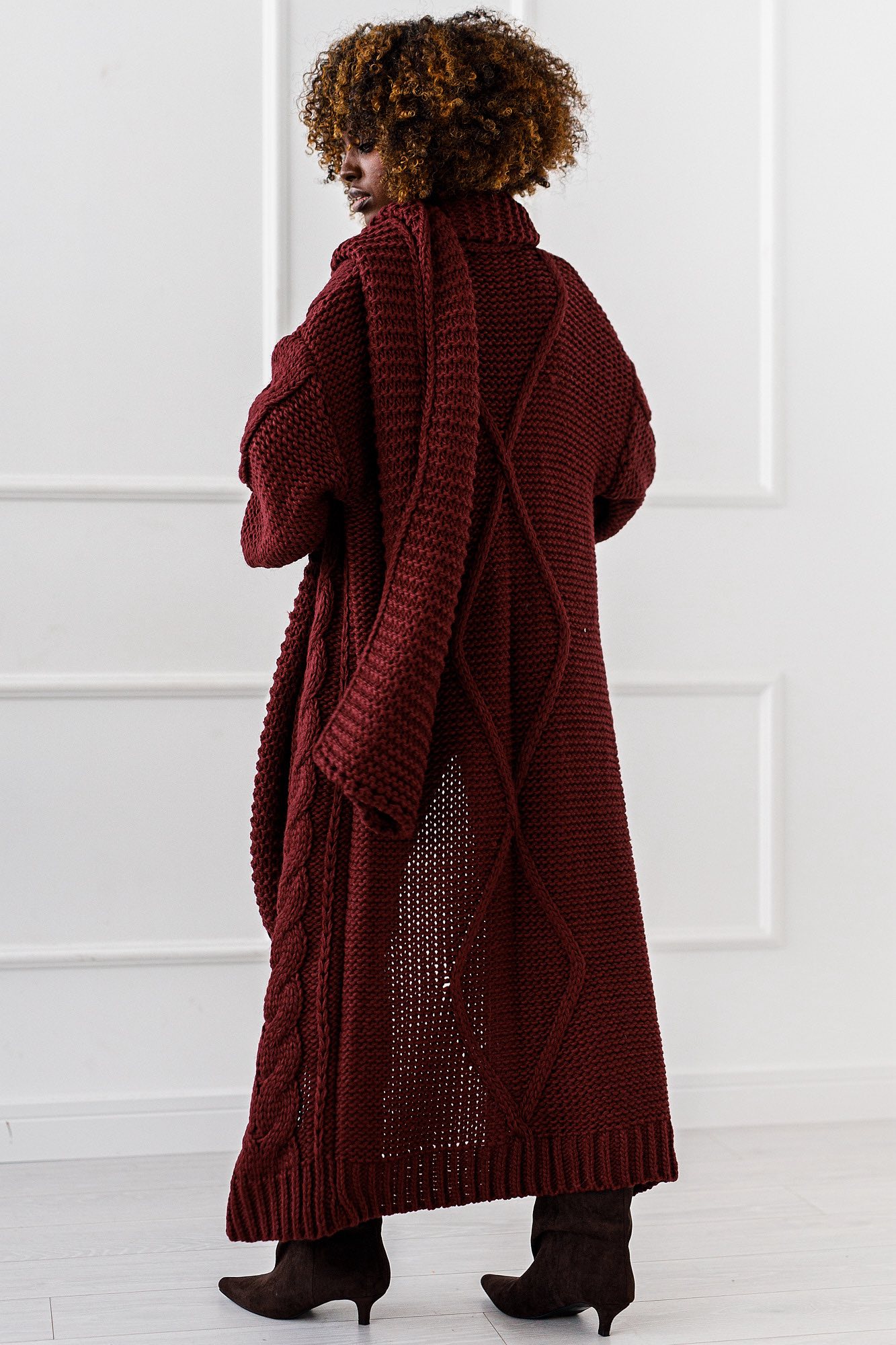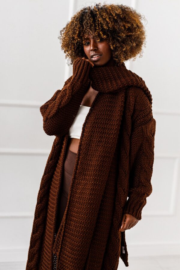 Długi, ciepły kardigan w zestawie z obszernym szalikiem