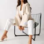 Nowoczesna marynarka o prostym, pudełkowym fasonie. Szerokie rękawy nadają jej wyrazisty, lekko oversize’owy charakter. Uwagę przyciąga naszywka na rękawie – detal, który dodaje stylizacji indywidualności i modowego pazura.