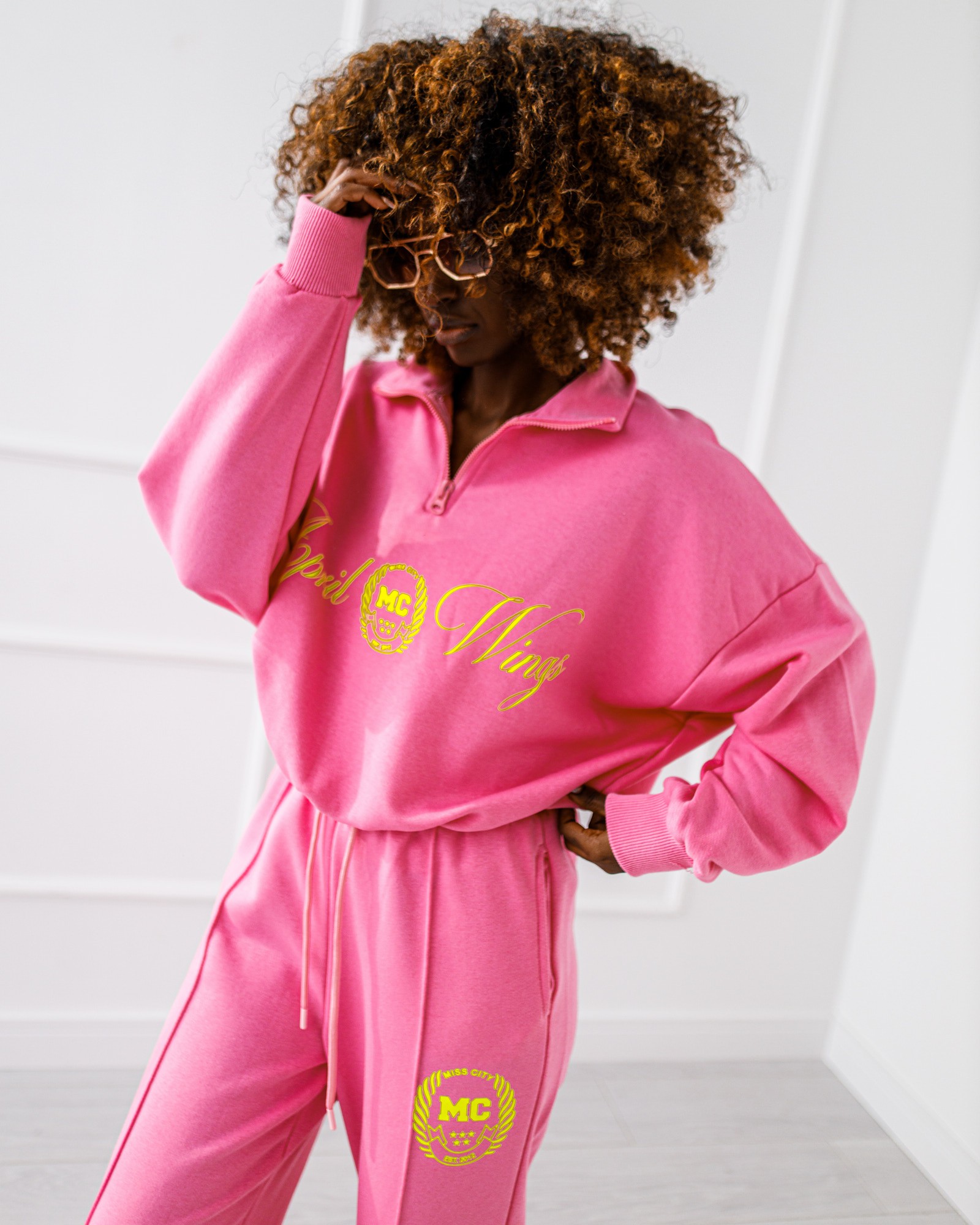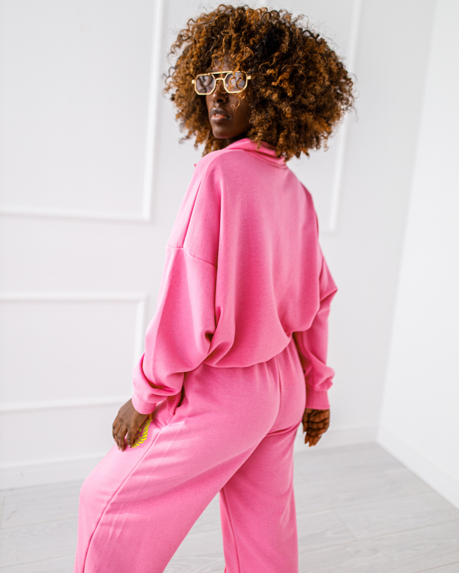 Dres w rozmiarze uniwersalnym. Bluza wkładana przez głowę z zapięciem na suwak przy szyi.