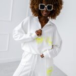 Dres w rozmiarze uniwersalnym. Bluza wkładana przez głowę z zapięciem na suwak przy szyi.