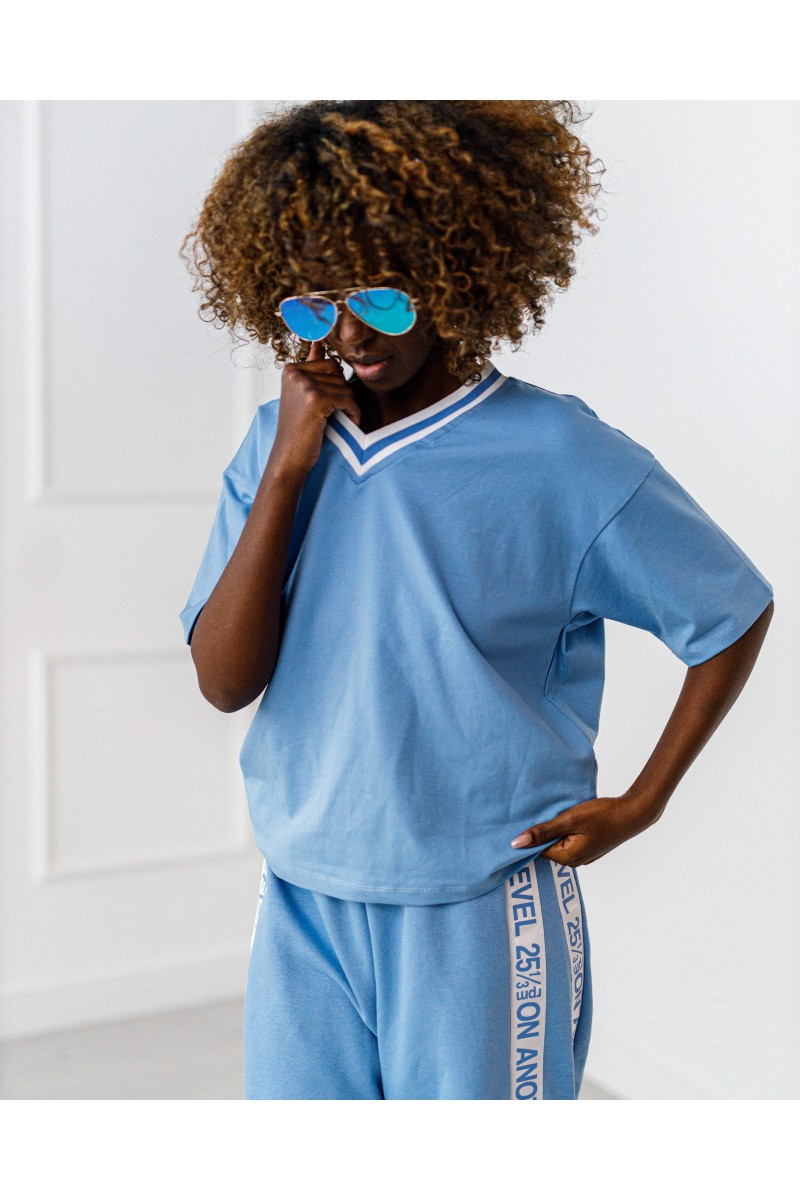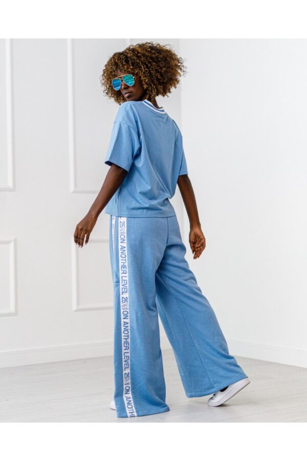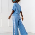Komplet dresowy z dekoltem w serek. Szerokie spodnie z lampasami.