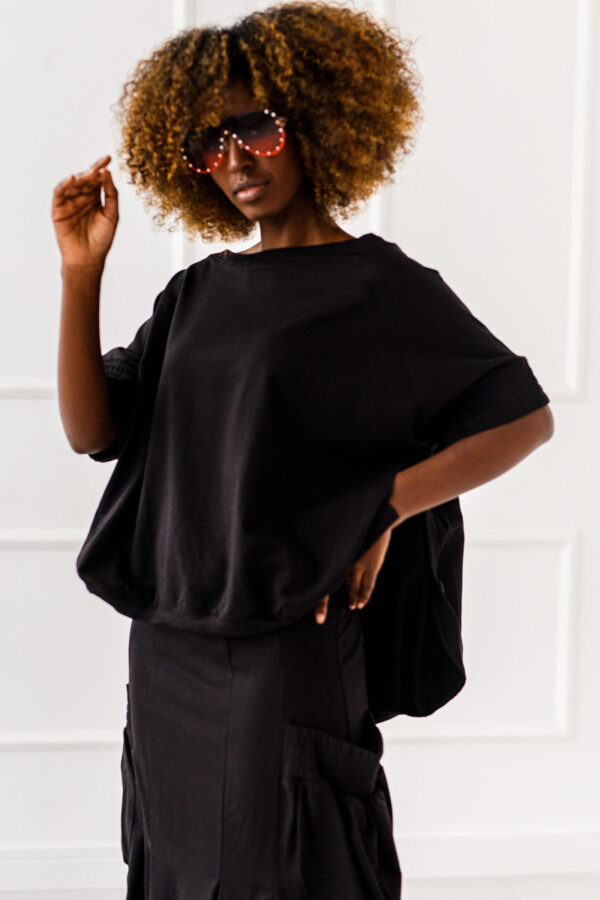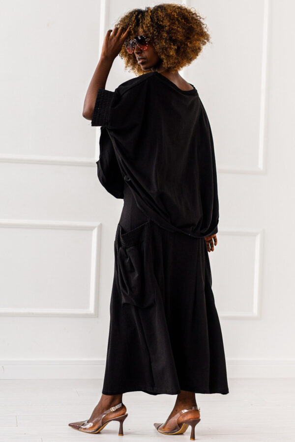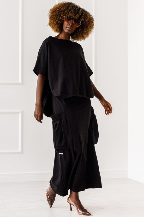 Komplet Elegance , stylowy komplet, który łączy w sobie wygodę z nowoczesnym designem. Luźna bluza z krótkim rękawem oraz długa spódnica, wszystko nadaje stylizacji lekkości i nowoczesnego charakteru.