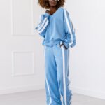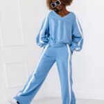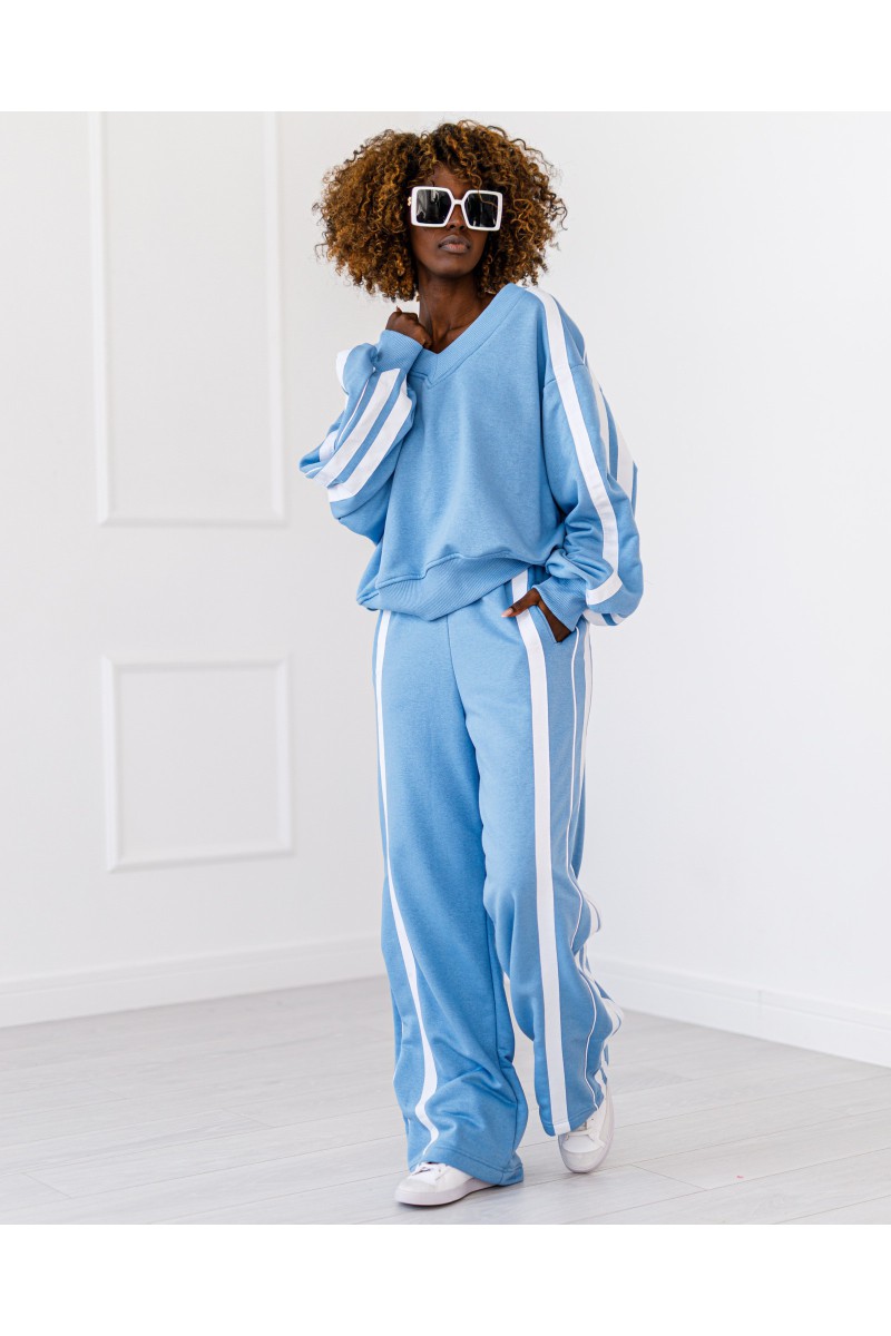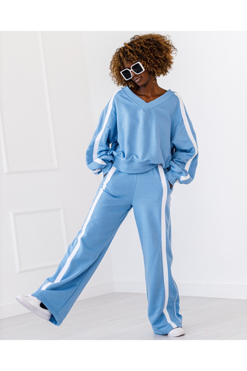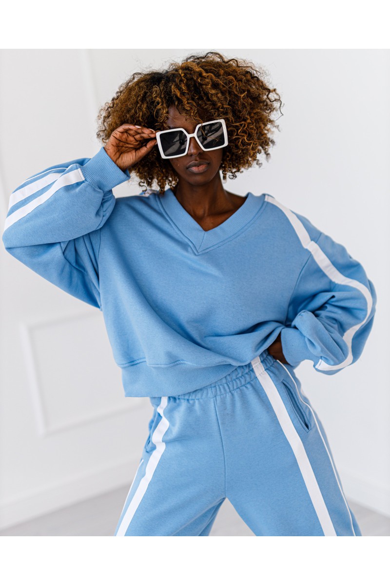 Komplet dresowy z lampasem. Bluza z dekoltem w serek.