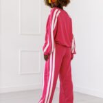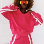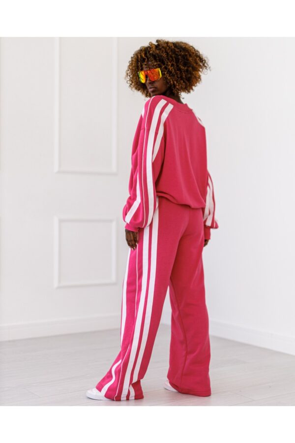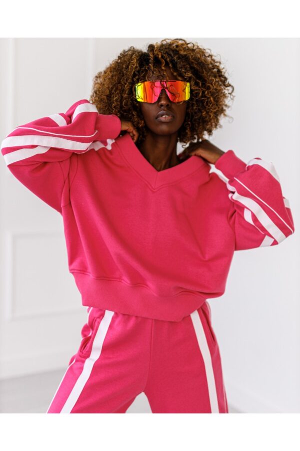 Komplet dresowy z lampasem. Bluza z dekoltem w serek.