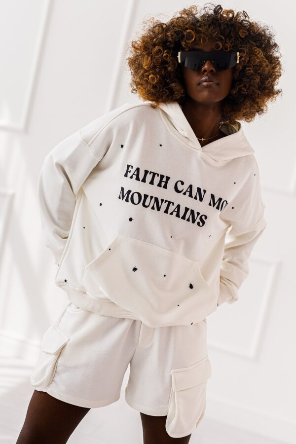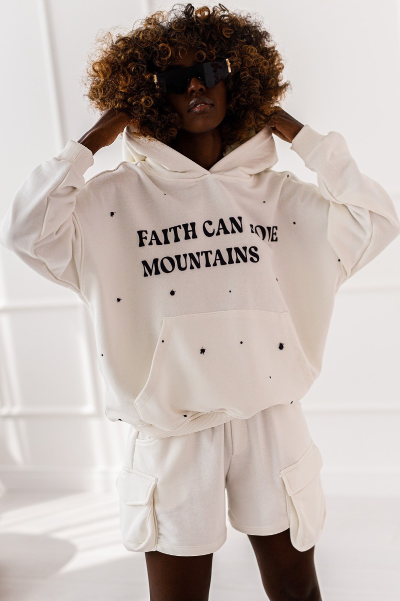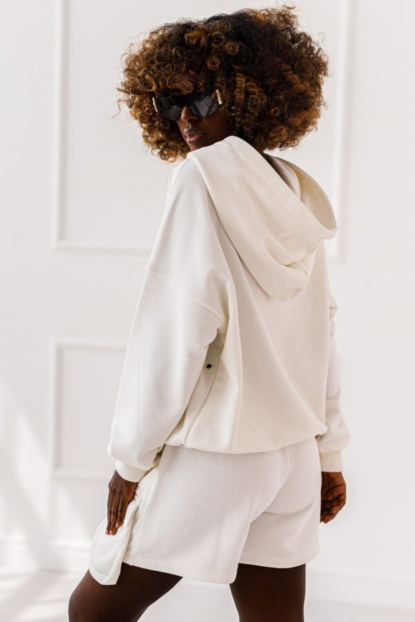 Komplet dresowy Luna, oversizowa bluza z kapturem i szorty z kieszeniami to duet idealny – luźny ale z charakterem.