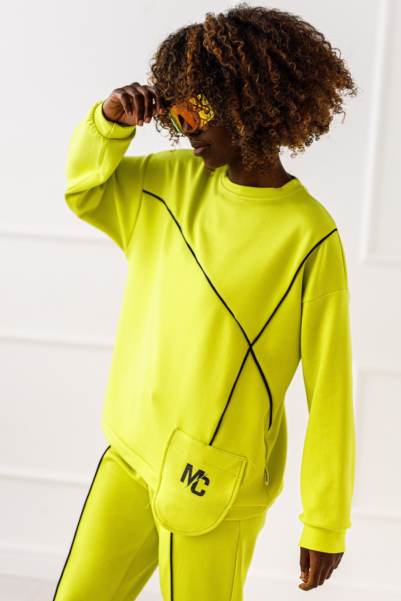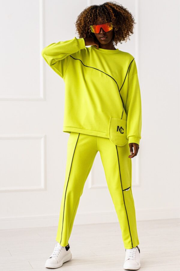 Komplet dresowy, świetnie układa się na sylwetce . Przeszycia podkreślają nowoczesny casualowy charakter.