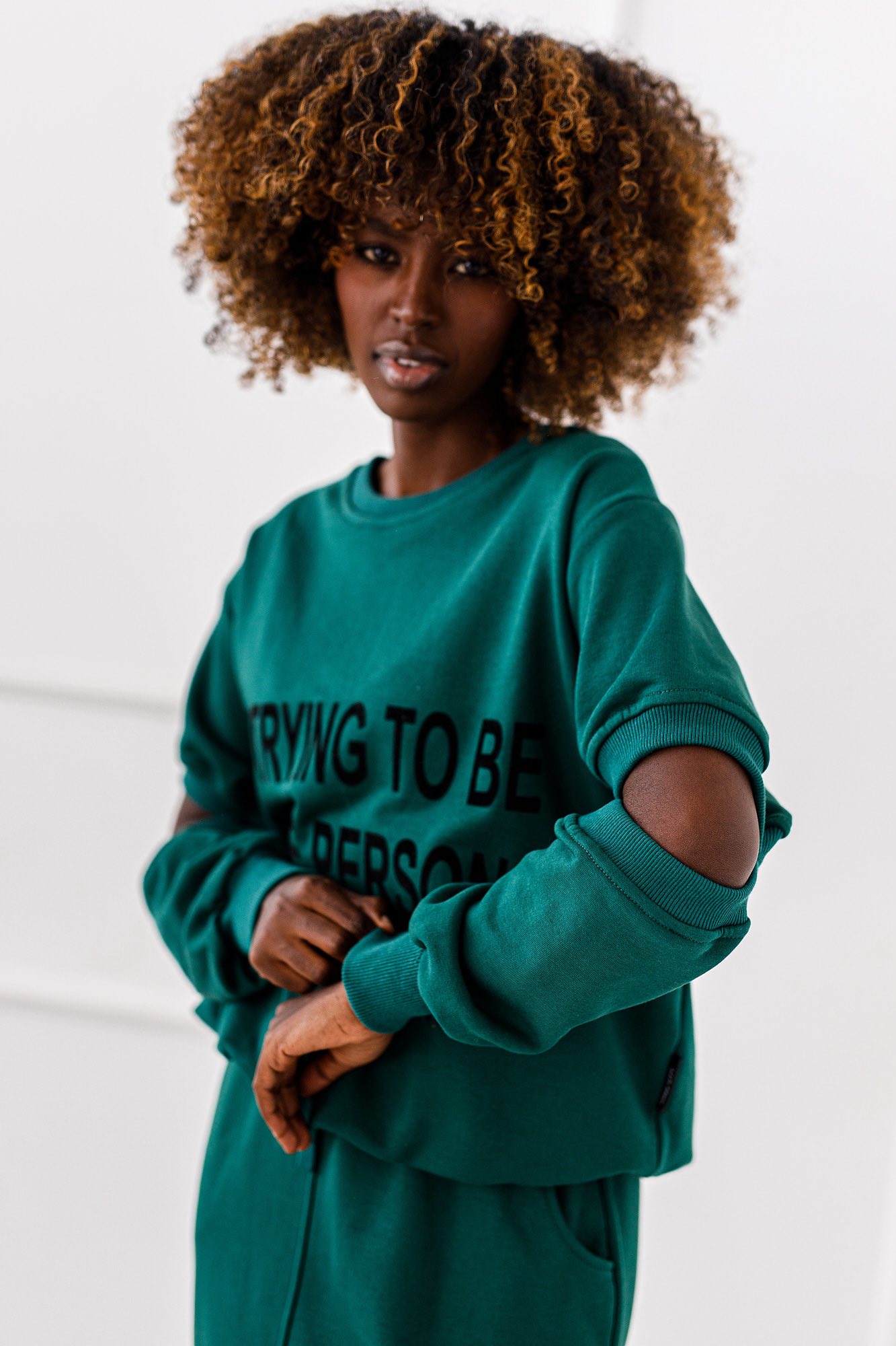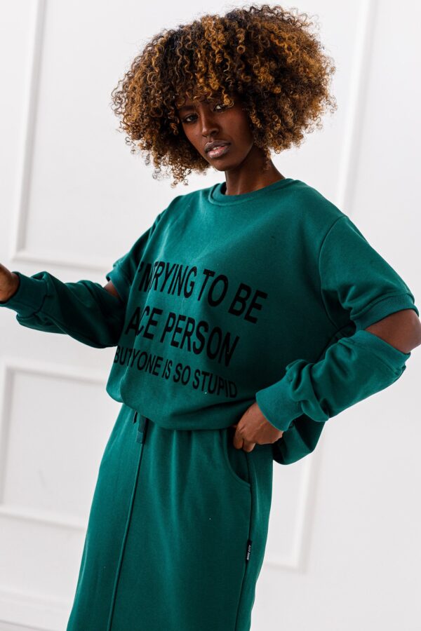 Stylowy komplet – bluza z nadrukiem + spódnica midi