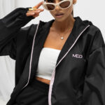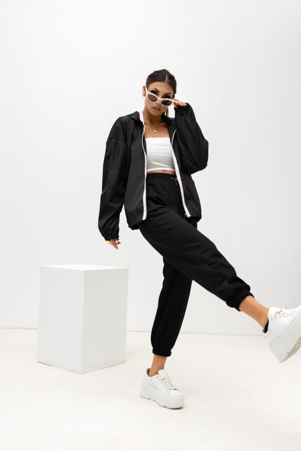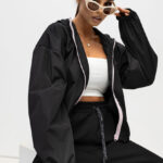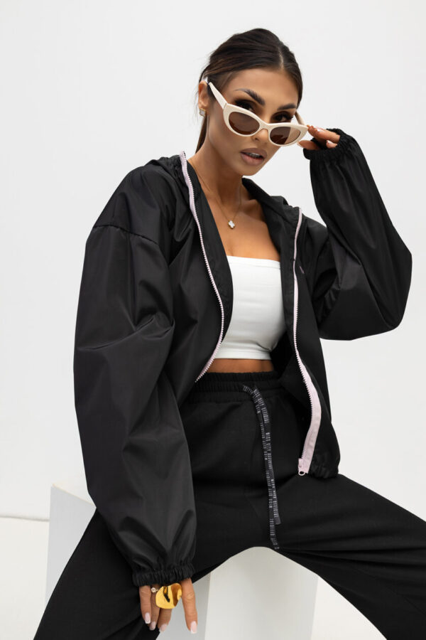 Stylowa kurtka o nowoczesnym, miejskim charakterze i długości do połowy uda. Model zapinany na zamek oraz napy, wyposażony w kaptur ze ściągaczami oraz regulację w talii, która pozwala dopasować fason do sylwetki. Posiada praktyczne kieszenie z przodu i staranne przeszycia, które podkreślają jej modny wygląd.