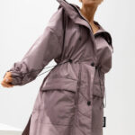 Stylowa kurtka o nowoczesnym, miejskim charakterze i długości do połowy uda. Model zapinany na zamek oraz napy, wyposażony w kaptur ze ściągaczami oraz regulację w talii, która pozwala dopasować fason do sylwetki. Posiada praktyczne kieszenie z przodu i staranne przeszycia, które podkreślają jej modny wygląd.