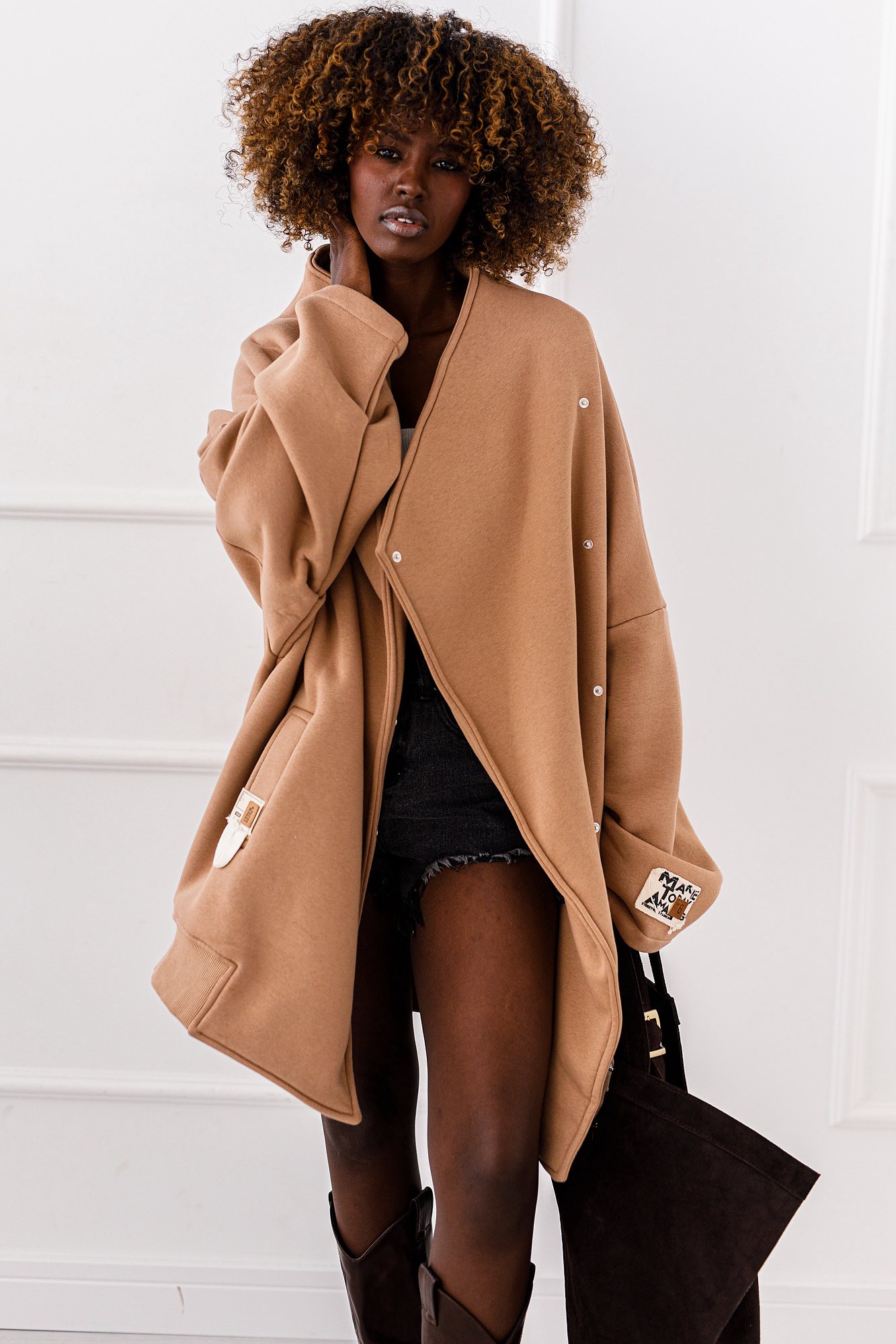 Oversize’owy płaszcz o unikalnym kroju – wygodny, stylowy i absolutnie wyjątkowy.