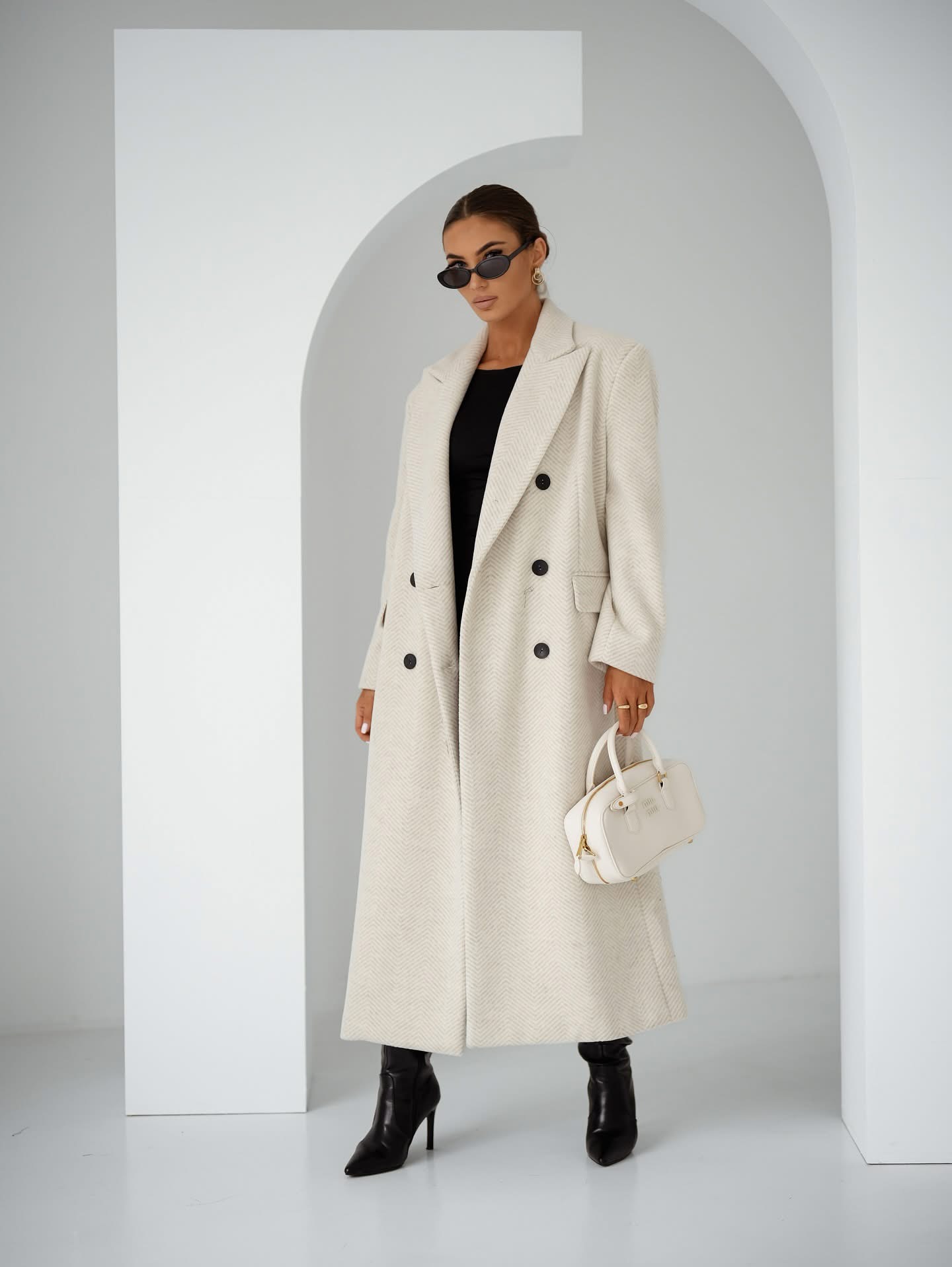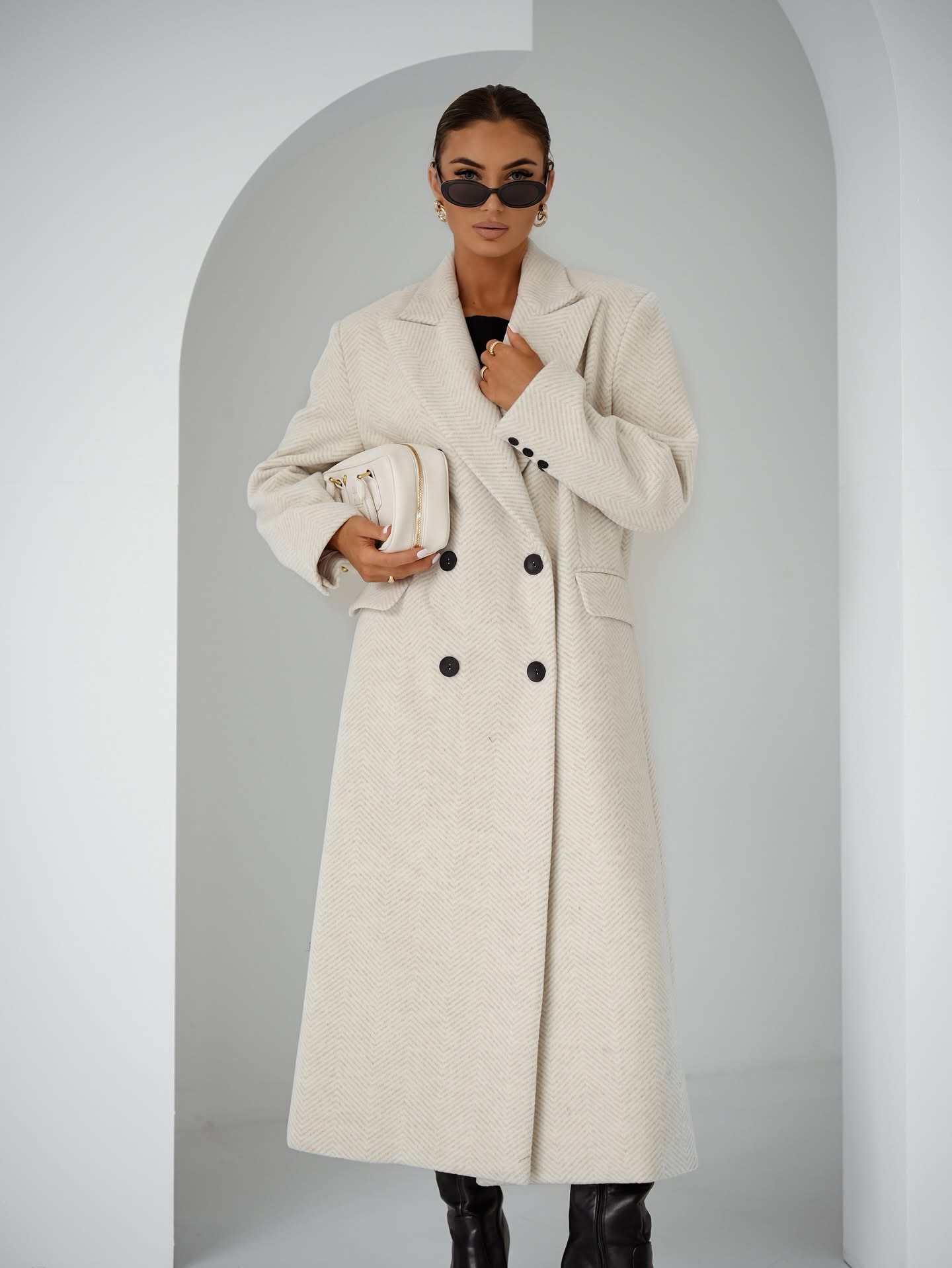 Oversizowy Płaszcz to esencja nowoczesnej elegancji — miękki, otulający krój, perfekcyjna linia ramion i subtelna tekstura w jodełkę. Stylowy, wygodny i ponadczasowy — idealny na chłodne jesienne dni.