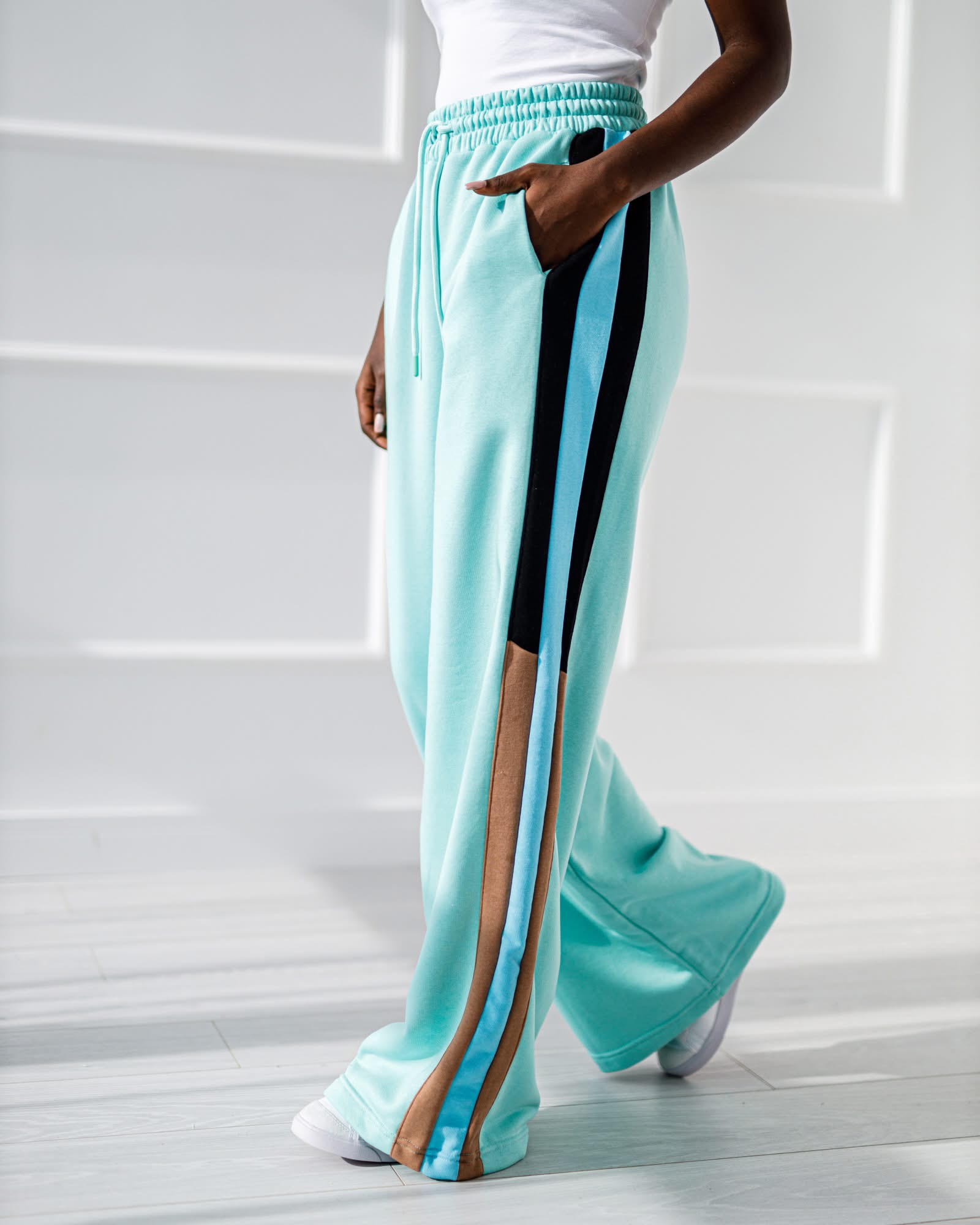 Spodnie luźne dresowe z prostymi nogawkami i paskiem z boku . Idealne na codzienne stylizacje, które łączą wygodę z modnym wyglądem.