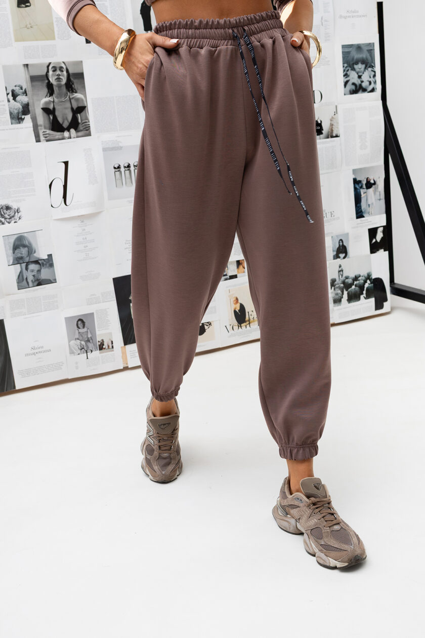 Wygodne spodnie o luźnym fasonie, z elastyczną talią i regulacją na troczki, które zapewniają idealne dopasowanie. Nogawki zakończone ściągaczami podkreślają sportowy charakter modelu.