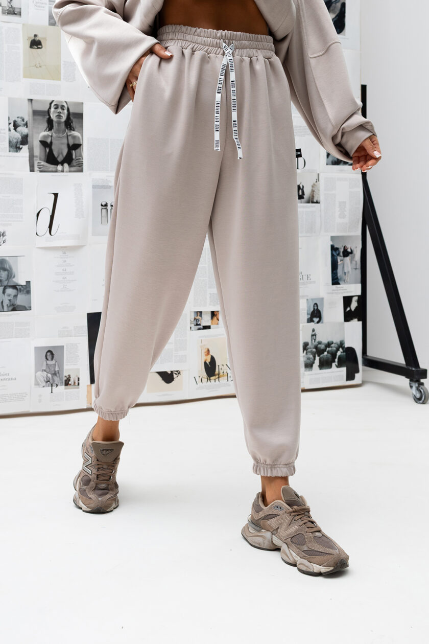 Wygodne spodnie o luźnym fasonie, z elastyczną talią i regulacją na troczki, które zapewniają idealne dopasowanie. Nogawki zakończone ściągaczami podkreślają sportowy charakter modelu.