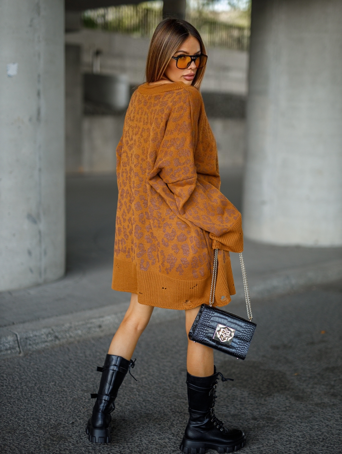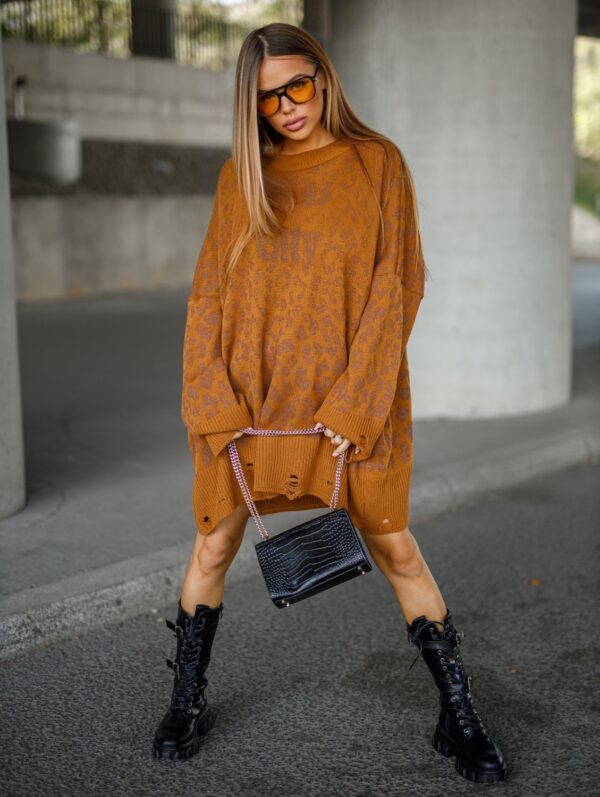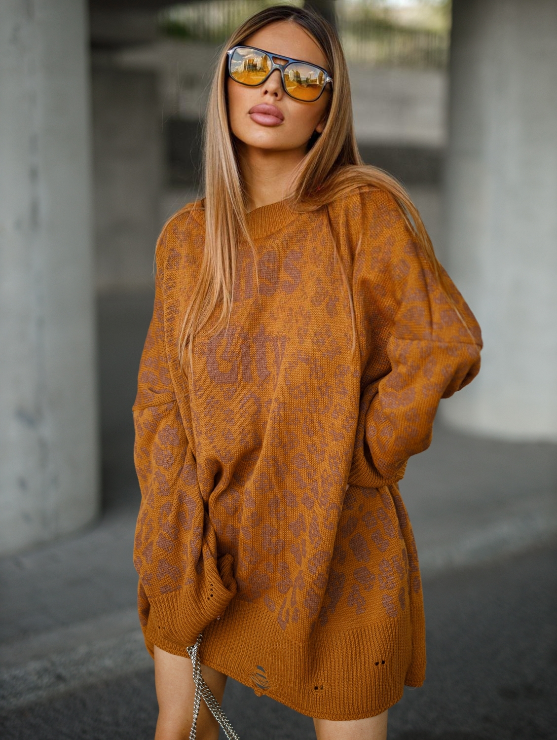 Stylowy sweter w pięknym, intensywnym musztardowym kolorze, który doda Twojej stylizacji ciepła i charakteru. Luźny fason zapewnia komfort noszenia, a uniwersalny design sprawia, że sweter świetnie pasuje zarówno do jeansów, legginsów, jak i spódnic.Ostatnia sztuka.