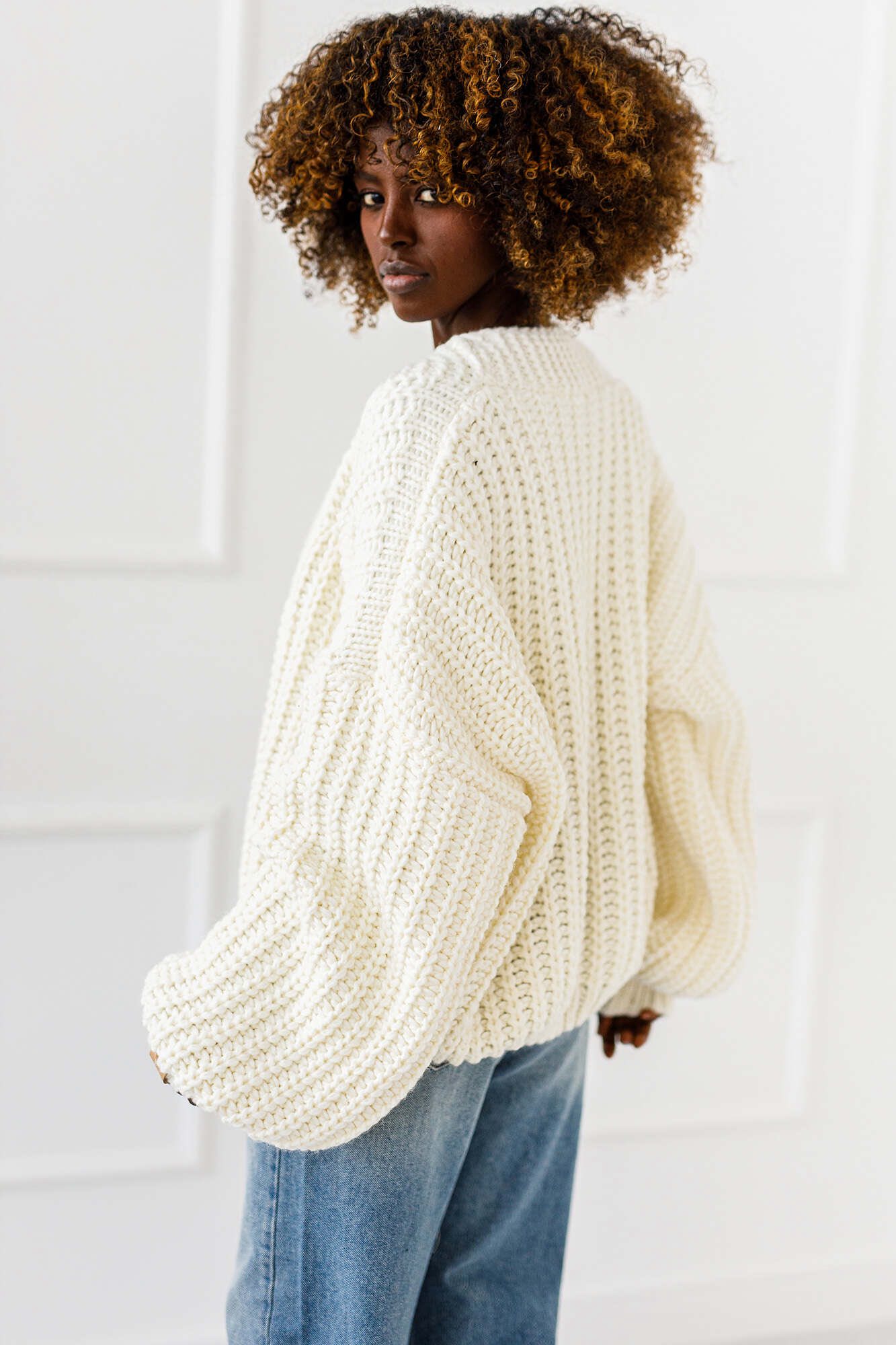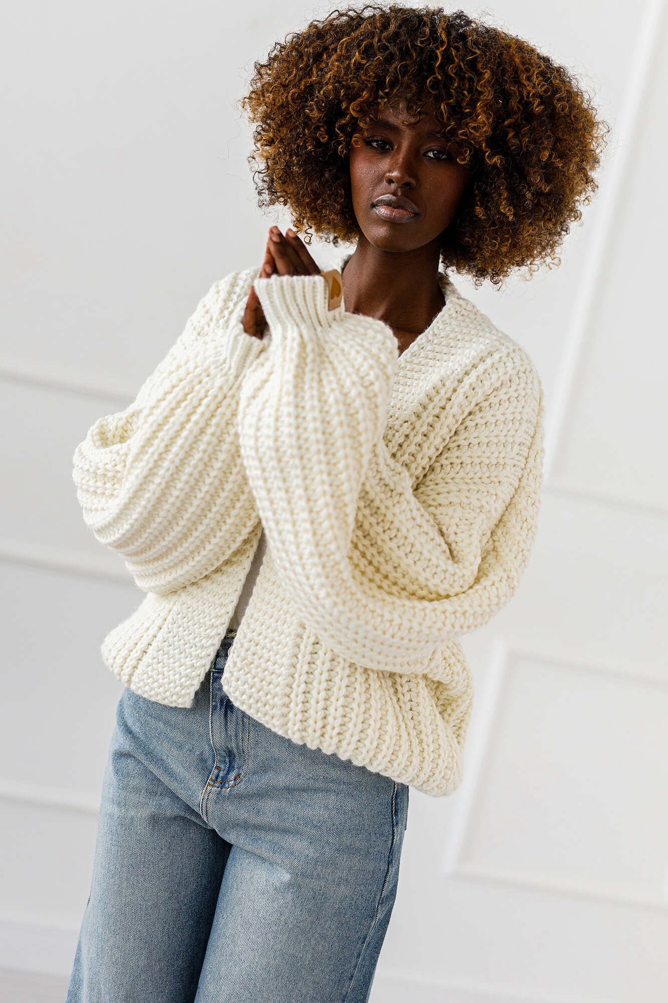 Miękki, oversize’owy kardigan o grubym splocie – idealny na chłodniejsze dni!