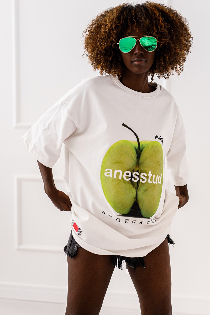 Tshirt z nadrukiem zielonego jabłka. Oversiowy t-shirt to must have w każdej garderobie.