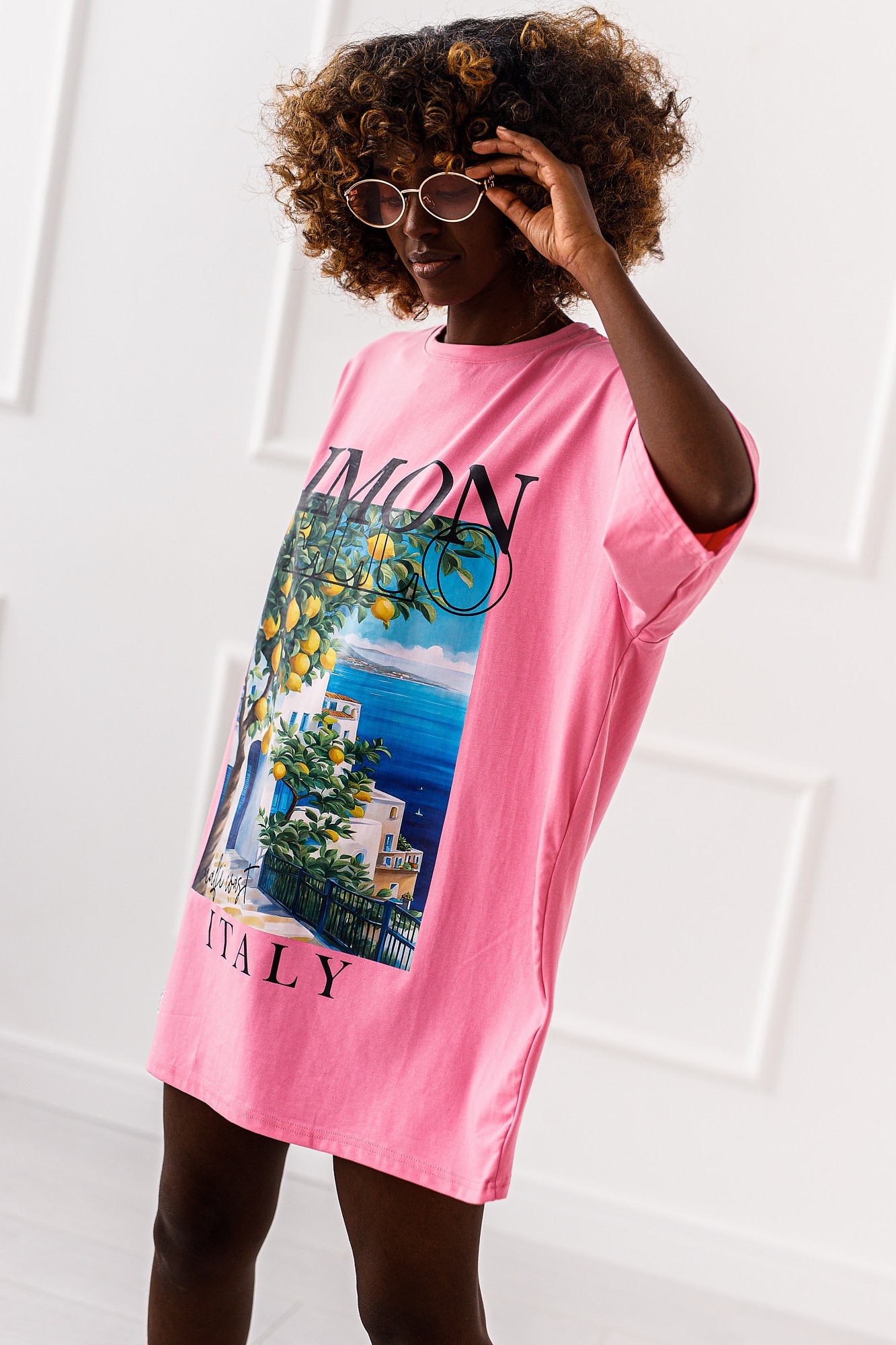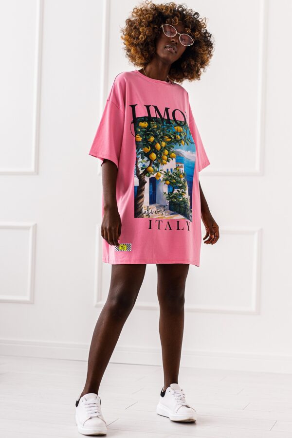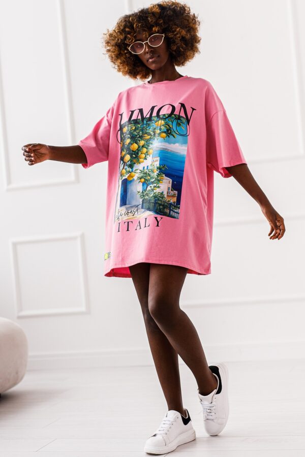 T – shirt to letnia pocztówka z Amalfi, nadrukowana na oversizowym t – shirce. Wzór który pachnie wakacjami