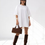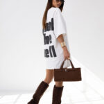T-shirt o pudełkowym kroju ma luźną, oversize’ową formę z przedłużonymi rękawkami do łokcia, co nadaje mu nowoczesny, sportowy wygląd. Duży nadruk na przodzie, stanowi główny element przyciągający uwagę. Jest wygodny, casualowy i idealny do codzienn