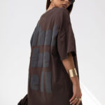 T-shirt o pudełkowym kroju ma luźną, oversize’ową formę z przedłużonymi rękawkami do łokcia, co nadaje mu nowoczesny, sportowy wygląd. Duży nadruk na przodzie, stanowi główny element przyciągający uwagę. Jest wygodny, casualowy i idealny do codzienn
