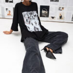 Rozmiar: Uniwersalny, oversize Długość przód/tył: 70 cm Obwód w biuście: 140 cm Długość rękawa: 40 cm Skład: 95% bawełna, 5% elastan